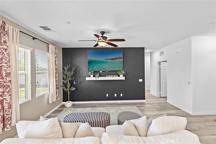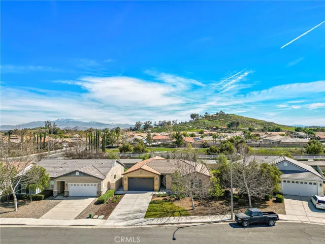 Welcome home to this beautifully upgraded single-story KB Cypress Home built in 2017, perfectly situated in the highly sought-after Hidden Hills community. Offering 3 spacious bedrooms, 2 bathrooms, and 1,430 square feet of thoughtfully designed living space, this home combines modern style with everyday comfort. As you enter you will be greeted with a warm and inviting entry that opens to a bright, airy great room. The open-concept layout is filled with natural light, creating the perfect space for both relaxing and entertaining. At the heart of the home, the stunning kitchen features a large center island ideal for cooking, casual dining, and gathering with family and friends. Upgraded with elegant gray quartz countertops, a classic white subway tile backsplash, stainless steel appliances, and modern fixtures, this kitchen is as beautiful as it is functional. The seamless flow continues with a sliding glass door that leads to a spacious, fully fenced backyard and an upgraded covered patio. Whether hosting weekend barbecues or creating your dream outdoor retreat, this private backyard offers endless possibilities. The generously sized primary suite provides a peaceful escape, complete with a walk-in closet, dual sinks, and a walk-in shower. Two additional bedrooms and a full bathroom with a tub/shower combo offer flexibility for family, guests, or a home office. Additional highlights include vinyl plank flooring throughout, modern finishes, an inside laundry room for convenience, and direct access to the two-car garage. The garage has been upgraded with Epoxy too! Enjoy all that Hidden Hills has to offer, with community amenities that include scenic walking trails, basketball and tennis courts, a soccer field, and a playground. Conveniently located near schools, shopping, dining, and with easy access to the 215 and 15 freeways, this home offers both comfort and convenience. Move in ready and thoughtfully designed, it is a wonderful opportunity for first time buyers or those looking to downsize. This single-story home is truly a must see!