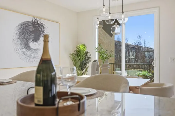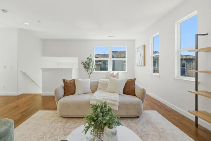 Bright Corner Unit 2-bedroom, 2-bath townhome located in the highly desirable Fusion community in Sunnyvale. This well-maintained home features abundant natural light from extra windows, an open-concept living area with a flexible study nook ideal for a home office or play space, and a gourmet kitchen with a spacious breakfast bar and in-unit washer/dryer. The oversized primary suite offers dual vanities and a walk-in closet. A generously sized second bedroom provides ample storage. Residents enjoy resort-style amenities including a movie theater, fitness center, party room, golf putting green, play area, and BBQ area. Conveniently located near Magical Bridge Playground and multiple parks, as well as major tech campuses, Downtown Sunnyvale, CalTrain, and easy access to Hwy 101, 237, and Lawrence Expressway. Must see! Don’tmiss this exceptional opportunity!