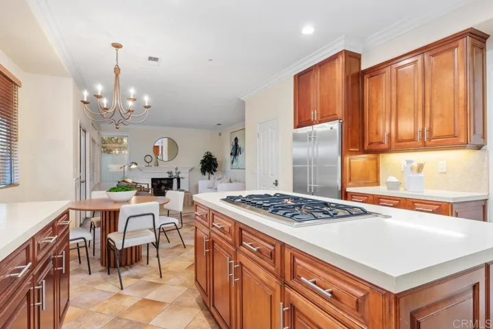 Nestled on a quiet cut-de-sac in one of Encinitas’ most desirable locations, this beautifully designed home offers the perfect blend of comfort and space. Step inside to soaring ceilings in the formal living and dining areas, highlighted by a dramatic staircase that creates a stunning first impression. A convenient downstairs bedroom and full bath provide flexibility for guests, extended family, or a home office. The spacious kitchen is the heart of the home, featuring a large center island, abundant cabinetry, and seamless flow into the adjoing family room-perfect for gatherings and everyday living. Upstairs, retreat to the expansive primary suite with vaulted ceilings and a large bathroom complete with a romantic two-sided fireplace, spa-like soaking area, and a generous walk-in closet. Two additional bedrooms, a full bath, and a versatile bonus room-easily convertible to a fifth bedroom- offer plenty of space for work-from home needs or hobbies. Additional highlights include a three-car garage and a private backyard oasis with lush landscaping-ideal for relaxing or entertaining. Two EV chargers are installed in garage.