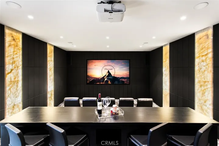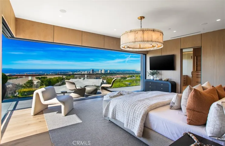 Located within Corona del Mar’s Spyglass Hill enclave, 53 Montecito is a newly constructed estate capturing approximately 270° views of Newport Harbor, the Pacific coastline, Back Bay, city lights, and mountain ranges. Commanding an elevated corner parcel with no direct neighboring structures on three sides, the residence enjoys expanded view corridors where horizon, harbor, and sky converge. Spanning approximately 7,584 square feet on a 15,740-square-foot lot, the six-bedroom, eight-bathroom home was conceived and executed as a primary residence with architectural expression and engineering precision prioritized. Arrival unfolds through a 60-foot gallery with 22-foot ceilings, aligned through walls of glass to the infinity-edge pool and Pacific horizon beyond. Floating steel-and-glass stairs, a living moss installation, and water features anchor the space. Architectural concrete panels, white oak detailing, and uninterrupted ceiling planes form a refined presentation. The great room opens to the outdoors through a 35-foot pocketing glass wall and zero-post corner systems. Entertaining spaces flow to reflecting pools, fire elements, and outdoor living areas framed in cedar and concrete, oriented toward sunset views. At the center of the home, the kitchen is anchored by a backlit Cristallo quartzite waterfall island. Pitt cooking systems, Wolf and Sub-Zero appliances, cabinetry, a Cristallo quartzite wine wall, and a secondary prep kitchen combine presence with performance. Whole-home water filtration and reverse osmosis systems serve key fixtures and refrigeration. Two primary suites offer flexibility. The upper-level primary suite opens to a terrace capturing harbor and ocean views. Taj Mahal stone, slab shower construction, a walk-in closet, oak paneling, and integrated lighting define the space. A lower-level primary suite provides accommodations for guests or multigenerational living. Amenities include a 10-seat theater with ballistic-grade reinforcement, fitness and wellness spaces, elevator access to all levels, infinity-edge pool with spa, and water features. Technology includes Josh.AI automation, Lutron lighting control, security and camera systems, structured wiring, and six zoned HVAC systems. 53 Montecito represents an opportunity to acquire a contemporary estate—an elevated coastal residence crafted for those who value design, privacy, and panoramic views.