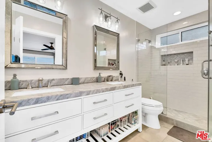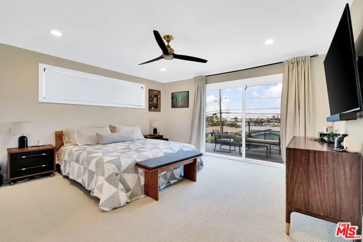 Welcome to this beautifully remodeled single-family residence in the desirable Golden Hills neighborhood of Redondo Beach, located within the sought-after Jefferson Elementary School district. Thoughtfully updated throughout, the home offers an open and inviting downstairs floor plan with hardwood floors and a well-appointed kitchen featuring like-new GE Profile stainless steel appliances and a marble center island designed for both everyday living and effortless entertaining. Sliding glass doors from the kitchen and great room open to a sun-filled backyard with newly installed pavers and fencing, creating a clean, private outdoor space ideal for relaxing or gathering. A convenient powder room on the main level adds functionality to the living area. Upstairs, three generously sized, light-filled bedrooms include a spacious primary suite with three closets and sliding glass doors leading to a private balcony with open city and downtown views. The updated en-suite primary bathroom features marble countertops while the remodeled hallway bathroom offers quartz countertops and a tiled shower/tub combination. Additional upgrades include custom shades from The Shade Store, new interior stair railings, a newly installed balcony railing, updated lighting and ceiling fans, a new roof, and a 125-amp electrical panel. The home also features central air conditioning and an a convenient attached two-car garage. Located just a short walk to Jefferson Elementary, two neighborhood parks, and a dog park, and within walking distance to Hermosa Beach, this home offers a well-maintained and thoughtfully updated opportunity to enjoy the ease of South Bay living.