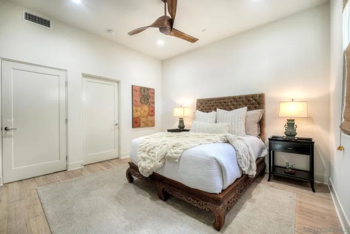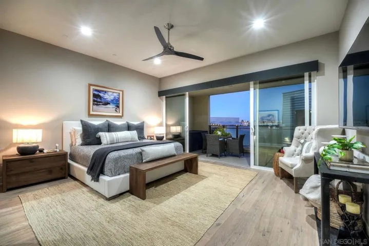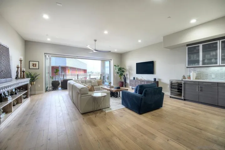 Welcome to Waterpoint, one of Point Loma’s most coveted waterfront communities. This exquisite single-level residence offers an expansive 2,214 sq. ft. of refined coastal living space with sweeping views of the downtown SD skyline and bay. Designed for effortless luxury, this home features 10 ft ceilings, 3 full baths, 2 expansive primary-style suites plus a versatile office/den which can easily be converted into a 3rd bedroom. The chef’s kitchen showcases European-style cabinetry, Bosch appliances, a wine fridge & generous prep space ideal for entertaining on a grand scale. The open living area flows seamlessly through LaCantina stacking doors to a private outdoor patio complete with a cozy fireplace – the perfect setting to enjoy coastal breezes & the glittering skyline. The primary suite features a spa-inspired bathroom offering a spacious walk-in shower and a floating soaking tub. The dreamy walk-in closet complete with built-ins has plenty of space for all of your luxury items, and you don’t want to miss the sliding glass doors leading to your second private patio – perfect for your morning coffee. Thoughtful items and upgrades to note; hardwood flooring throughout, LED recessed lighting fixtures throughout, modern barn doors on primary bathroom and office/den space creating privacy, motorized blackout shades in the primary bedroom, gas stub out on patio for your BBQ, & pull out shelves throughout the kitchen. Waterpoint is conveniently located directly behind numerous waterfront paths leading to restaurants, coffee shops, and multiple docks for our boat lovers. You are also just a few minutes away from the SD Yacht Club, Liberty Station and the SD Airport.