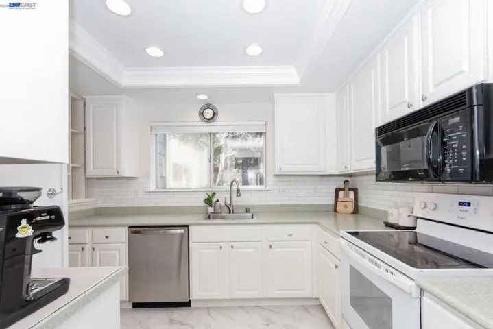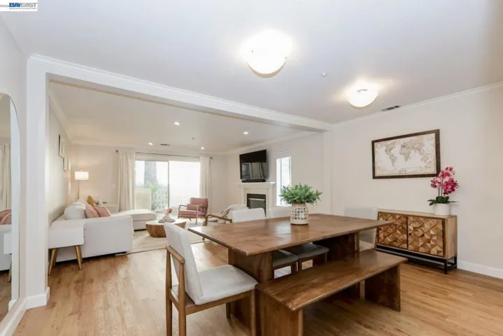 Welcome to a beautifully single-level townhome style condo in the desirable Carriage Place community. This rarely available downstairs end/corner unit offers 2 bedrooms, 2 bathrooms and 1,208 sqft of comfortable, thoughtfully designed living space. The floor plan features a spacious living & dining area filled with natural light, complemented by laminate flooring, recessed lighting, and a cozy fireplace. The modern kitchen is enhanced with updated recessed lighting, classic subway tile with ample cabinetry for storage. Two generously sized bedrooms with large closets, and the primary suite includes an en suite bathroom. The bathrooms showcase stylish finishes and built-in showers seating. Step outside to your own private patio, perfect for relaxing or entertaining. In-unit washer and dryer for your convenience. One assigned covered carport space and abundant guest parking. The low HOA dues cover water and garbage services. Ideally located just minutes from downtown Walnut Creek, Walden Park, Iron Horse Trail, and within walking distance to BART station. Don’t miss this exceptional opportunity to own a beautiful home in a prime location!