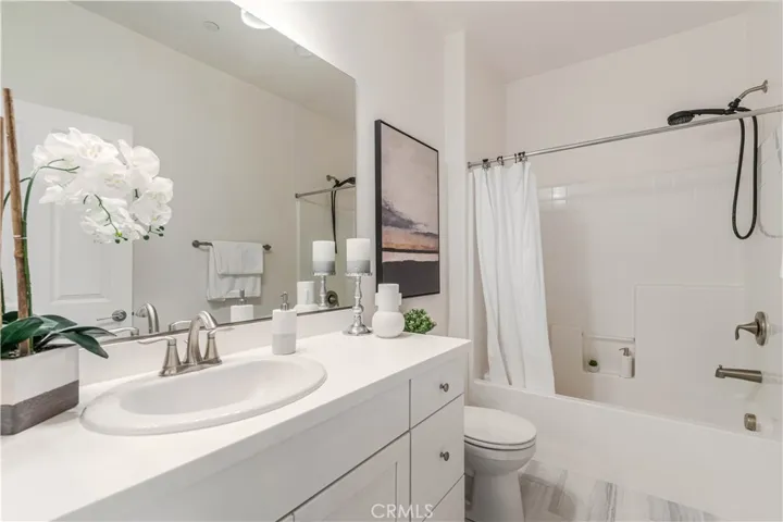 Beautiful, upgraded move-in ready single-family residence located in the heart of West Hills! Built in 2018 by D.R. Horton, this newer construction home offers 3 Bedrooms, 2.5 Bathrooms, and a private attached 2-car garage in an exclusive, well-maintained community. Upon entry, the main level showcases a modern open-concept floor plan designed for both comfortable daily living and effortless entertaining. The spacious living area flows seamlessly into the stylish Cook’s Kitchen featuring a large granite island with separate eating nook, stainless-steel appliances, white Shaker-style cabinetry, upgraded custom tile flooring, and abundant storage. A convenient Powder Room and oversized under-stair closet provide additional functionality. Upstairs features upgraded dark stained wood floor plus two spacious Guest Bedrooms share a remodeled Full Bathroom with tub. A versatile Loft at the top of the stairs functions perfectly as a home office nook, playroom, or cozy TV retreat. The dedicated Laundry Room includes side-by-side washer and dryer plus additional utility storage. The impressive Primary Bedroom Suite offers beautiful hillside views of the Chatsworth Nature Preserve, a large walk-in closet, and a private Bath with dual vanities, deep soaking tub, and separate shower. The private backyard is thoughtfully landscaped with paver tiles, drip irrigation and space to entertain. Energy-efficient features include a paid solar panel system with Tesla Powerwall 3 battery storage, tankless water heater, and built-in EV charger in the attached garage with newer epoxy floors. Residents enjoy access to a 13,000 sq. ft. adjacent park with picnic table, playground area, and ample guest parking. Ideally located minutes from excellent grocery options, premier shopping and dining at Westfield Topanga & The Village and outdoor recreation at Chatsworth Park for trails and hikes. Don’t miss this exceptional opportunity to own a turn-key home in a fabulous West Hills community!