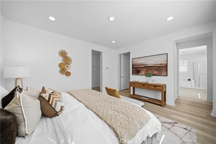 Beautiful north-south facing detached single-family home located in the core of the highly desirable master-planned Ontario Ranch community in Ontario. Offering 4 bedrooms and 3 bathrooms with approximately 2,053 sq.ft. of open-concept living space. The first floor features a convenient bedroom and full bathroom, ideal for guests or multi-generational living. Upstairs includes a spacious primary suite with dual vanities, soaking tub, separate shower, and walk-in closet, along with two additional secondary bedrooms and a shared full bathroom. The modern kitchen showcases white cabinetry, quartz countertops, stainless steel appliances, and a large center island that flows seamlessly into the dining and living areas. Fully paid-off solar provides long-term energy savings. Community amenities include a clubhouse and swimming pool. Prime central location directly across from a major shopping plaza featuring 99 Ranch Market, Costco, and In-N-Out, with easy access to the 60 and 15 freeways, and just minutes from Ontario International Airport and Ontario Mills. Move-in ready home in a highly convenient and thriving neighborhood. Move-in ready home offering comfort, convenience, and exceptional location.