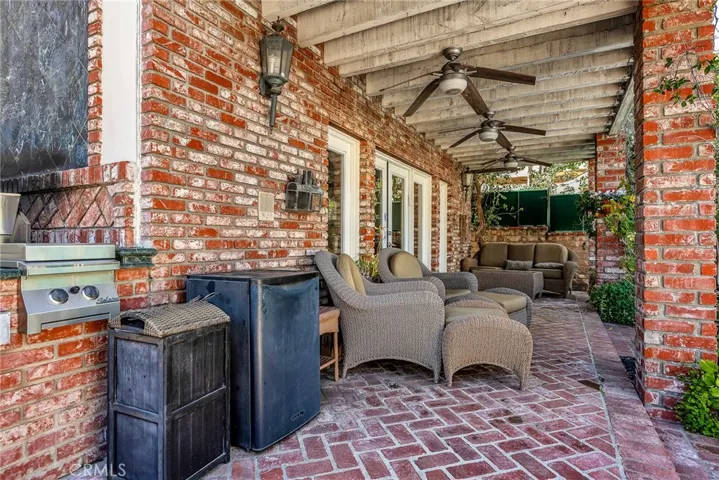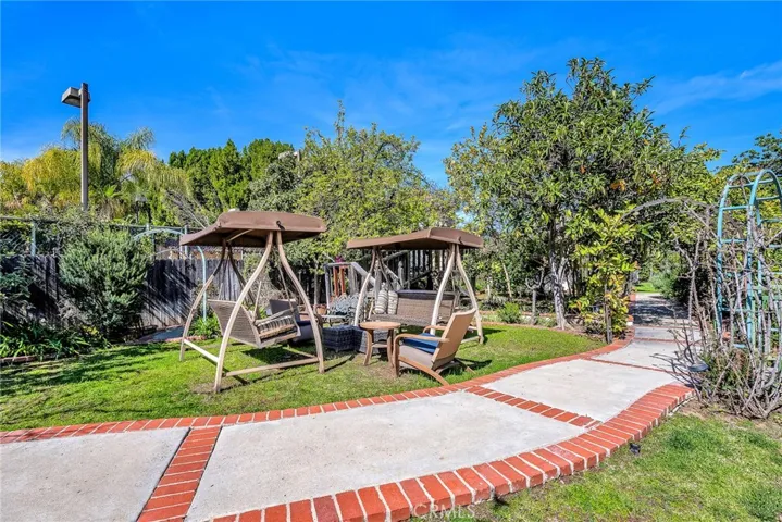 The exterior grounds evoke the charm of a private estate. A picturesque brick façade accented with ivy sets the tone, while the expansive pool and spa create a resort-like atmosphere. Beyond the detached two-car garage, the property unfolds into a park-like setting with mature fruit trees and vibrant landscaping, offering a truly unique outdoor experience.
