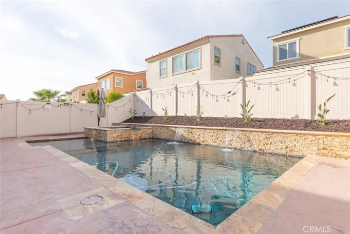 One of the home’s most impressive features is the 18-foot stackable sliding glass patio door that completely opens to the covered California Room, delivering seamless indoor-outdoor living. Step into your private backyard retreat with a sparkling pool and spa—perfect for relaxing evenings or hosting gatherings year-round.