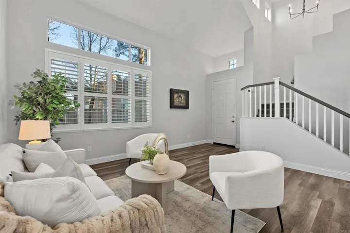 Welcome to 3712 Ridge Court in the prestigious Calavera Hills community of Carlsbad. Located at the end of a quiet cul-de-sac with homes on one side and a landscaped hillside on the other, this property offers privacy and openness. Enjoy expansive 180-degree northeast-facing views of Mount Calavera, Palomar Mountain, surrounding hills, vibrant sunrises, sparkling city lights, and multiple Fourth of July fireworks displays. This 4-bedroom, 3 full-bath home offers 2,287 sq ft of living space. Located on a pie-shaped lot with tropical landscaping. Soaring ceilings and abundant natural light enhance the open-concept layout. The main-level fourth bedroom is currently used as an office, providing flexibility for guests or remote work. Features include luxury vinyl plank flooring downstairs, carpet upstairs, designer tile in baths and laundry, custom plantation shutters throughout, fresh interior paint, updated chandeliers, and a remodeled gas fireplace. Additional amenities include central heating and air conditioning, ethernet/security/coax wiring, laundry room with sink, built-in garage storage, and a new Wi-Fi enabled garage door. Conveniently located near trails, beaches, shopping, dining, and LEGOLAND California, with easy access to I-5 and Hwy 78. Buyer and buyer’s agent to verify all information prior to close of escrow.