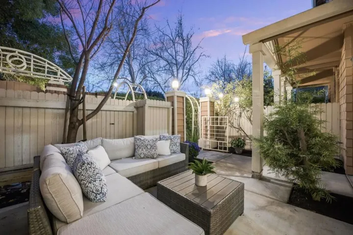 Welcome to this charming & spacious multi-level 3-bedroom, 2.5-bathroom townhome is located in the beautiful Rosewalk community. Spanning 1826 square feet, this residence offers an inviting & spacious layout. Vaulted ceiling in the formal living room create a generous sense of space & includes the ambiance of a cozy fireplace. The formal dining room loft is ideal for special occasions or a perfect work from home space! Kitchen features breakfast bar & modern appliances including a gas range, dishwasher & refrigerator. The kitchen/family room combo provides a cozy space, perfect for entertaining or family gatherings. Flooring on the main levels is a mahogany engineered hardwood, adding warmth & style throughout. Carpeting featured on stairs & bedrooms. Unique design elements include high ceilings, open beam ceilings, skylights, & vaulted ceilings, enhancing the sense of openness. Convenience is key with an in-home washer & dryer for laundry needs. Spacious front patio provides an al fresco area for outdoor entertaining. Balconies are adjacent to the kitchen and primary suite. Oversized 2-car attached garage has ample storage space available. The Rosewalk provides a community pool and spa. Situated in the Palo Alto Unified School District (Buyer to verify enrollment)