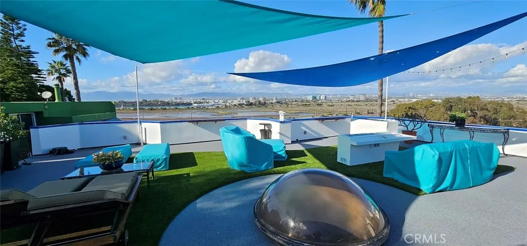 Nestled in a beach community, this extraordinary 3,900 sq. ft. multi-level contemporary home showcases breathtaking panoramic views. The residence is perfect for entertaining with impressive outdoor areas featuring a grand rooftop deck offering sweeping 360-degree views from the MDR Channel to the iconic Hollywood Sign and beyond, an inviting spa complemented by an enchanting stone waterfall, and a second spacious deck with an outdoor kitchen and BBQ area providing an ideal setting for alfresco dining. Inside, experience a luxurious and comfortable design with an expansive, light-filled layout, high ceilings, and expansive glass walls that connect the living space, gourmet kitchen, formal dining room, and an extensive family/media room seamlessly. The lavish master suite provides a serene escape with a marble bath and spa tub, while a secondary suite on the lower level offers a private entrance that is perfectly suited as a guest room. This modern home also features two fireplaces, a beveled glass entry, a grassy yard area, and parking for 4 cars including a double garage with direct access.