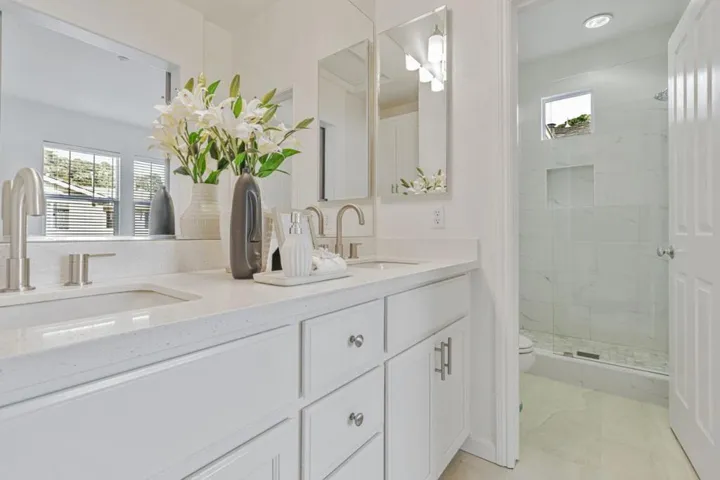 Bright and gorgeous end unit Townhome in the desirable Belmont Cambridge community. 2 bedrooms, 2 balconies, 2.5 baths, 2-car side-by-side garage. Living room welcomes you with an abundance of sunlight. Smooth flow between indoor and outdoor space as you walk out to dual balconies. Updated Kitchen boasts porcelain tiled floors, stainless steel appliances, white cabinets w/granite countertops. Newly updated flooring in the dining room and living room. Hall bath updated w/ porcelain tile, white cabinets , and marble countertops. Updated primary bath w/porcelain tile, white cabinets, quartz countertops, porcelain tile surround in the shower and mosaic floors. Excellent schools Cipriani Elementary, Ralston middle & Carlmont High. Community pool, hot tub, playground & ample guest parking. Close to walking/biking trails & Waterdog Lake! Minutes to the grocery store, Starbucks and Carlmont high etc. Easy Access to Interstate 280 and Highways 92 & 101.Welcome home!