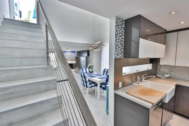 SHORT TERM FURNISHED RENTAL. This 2 bed, 2.5 bath condo is in the perfect location for your vacation. Close to the beach, restaurants, shopping, and The Hotel Del. The modern kitchen is fully stocked with everything you need. The unit features a full-size washer and dryer, AC, parking, and a garage perfect for your bikes and beach gear. The two bedrooms are downstairs while the living, dining, and kitchen are right when you walk in the front door. There is a deck upstairs with BBQ Grill and seating. A great place to relax during those summer evenings. Please note that this condo is up 3 flights of stairs. Inside the condo, there are two sets of stairs. One flight down to the bedrooms and a flight of stairs to the deck area. Condo does not accept pets. Unit does come with 2 beach chairs, umbrella and boogie boards