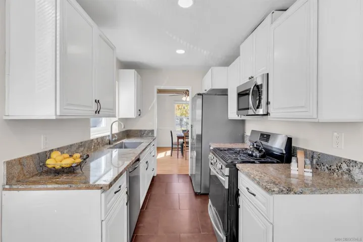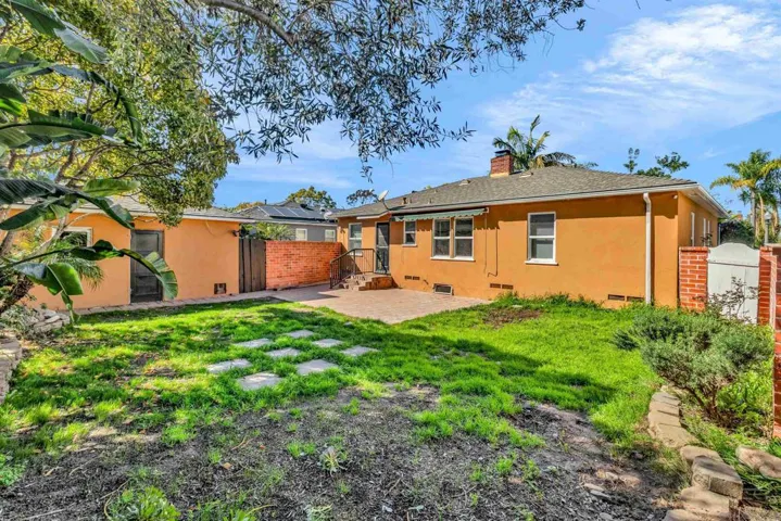 A charming single-story home located on a quiet residential street in the heart of Talmadge. This home blends classic character with thoughtful updates and comfortable living spaces. The inviting living room features hardwood flooring, a brick fireplace, recessed lighting, and a tray ceiling detail that adds warmth and architectural interest. Large windows bring in abundant natural light, creating a bright and welcoming atmosphere throughout. The galley-style kitchen is appointed with granite countertops, stainless steel appliances, white cabinetry, and ample storage, flowing seamlessly into the dining area—ideal for everyday living and entertaining. Both bathrooms are well maintained, and the functional layout offers flexibility for families, guests, or a home office setup. Step outside to a spacious backyard with a patio area and grassy yard, providing plenty of room for outdoor dining, gardening, or future customization. The property also includes a detached garage, extended driveway for additional parking, and mature landscaping that enhances curb appeal. Conveniently located near SDSU, parks, shopping, dining, and major freeways, this home presents an excellent opportunity for owner-occupants or investors seeking strong rental demand in a central San Diego location.