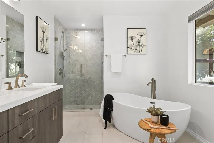 Set behind a quiet cul-de-sac in one of Northridge’s most sought-after neighborhoods, this exquisitely renovated 4-bedroom, 3.5-bathroom residence offers a seamless blend of modern luxury and resort-style living. Every detail has been thoughtfully curated, from brand-new plumbing throughout to newly installed custom window blinds enhancing both privacy and design.