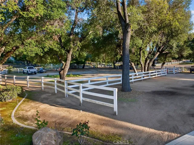 Nestled in the coveted La Cresta Highlands community of Murrieta, this extraordinary 4.9-acre estate backs directly to the Cleveland National Forest and is surrounded by multi-million-dollar properties, offering unmatched privacy, serenity, and panoramic natural beauty! The main residence showcases 5 bedrooms and 4½ baths, highlighted by a stunning grand room with soaring ceilings, exposed wood beams, a natural wood-burning fireplace, and a full-size wet bar—seamlessly opening to a true backyard oasis. Designed for entertaining, the resort-style pool and spa feature a custom slide, creating the ultimate gathering space for family and friends! A chef’s kitchen impresses with granite countertops, custom cabinetry, and high-end Viking stainless steel appliances. The spacious primary suite offers a cozy sitting area, fireplace, and picturesque views overlooking the pool and spa. Additional interior features include an upstairs bonus room, a richly appointed library with built-in custom cabinetry, and a large game room with its own wet bar and vaulted wood-beam ceilings—demonstrating quality craftsmanship throughout! The property also includes a turnkey 2-bedroom, 2½-bath guest house, plus a separate 500 sq. ft. 1-bedroom, 1-bath casita—ideal for multi-generational living or extended guests. Car enthusiasts and hobbyists will appreciate the impressive 1,500 sq. ft. detached 6-car garage/workshop! A double-gated circular driveway leads to park-like grounds studded with mature oak trees and a natural creek that runs along the back of the property. Equestrian-ready with corrals, shelters, fenced and cross-fenced areas, plus a tack room with laundry hookups. Equipped with a private well, 5,000-gallon water tank, and 48 paid solar panels for energy efficiency! Peaceful country living just 15 minutes to the I-15 freeway, shopping, dining, and within the award-winning Murrieta school district. An exceptional entertainer’s paradise—don’t miss this rare opportunity!