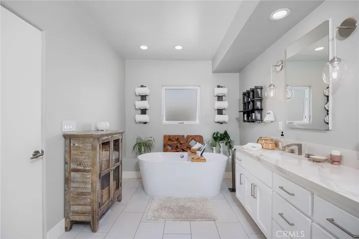 Downstairs, the primary suite opens to a private patio and includes a walk-in closet and a well appointed spa-like bath with dual vanities, soaking tub, and walk-in shower. Two additional bedrooms and a sleek updated bathroom complete the level.