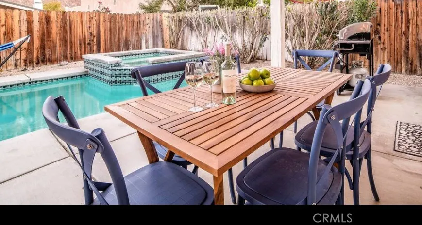 Welcome to this beautiful Santa Fe Style Desert Villa. The breathtaking Santa Rosa mountains surround you upon arrival at this magical desert escape. Step into the gated front courtyard as you are welcomed to your 3 bedroom, 2 bath home, then glance back to take in the mountain views over the flowering bougainvillea. Continue to walk through the original wood beamed entrance and be delighted with the comfortable and inviting interior. A large open dining and living space flow from front to backyard. Double French doors open to the newly renovated private pool and spa area which includes a covered deck with dining table for 6, lounge chairs and umbrella, and a relaxing hammock. Float in the pool and soak up the sun, enjoying the space to its fullest. As you return inside, enter the kitchen with original terra cotta tile and Spanish details which make for an inviting space to cook your meals. Two barstools and a counter offer extra kitchen seating. The living room is outfitted with a large comfortable leather sofa and loveseat, smart tv and fireplace. The decor is a Spanish/Bohemian blend that brings an element of relaxation to this beautiful Santa-Fe style home. Through the hallway, the primary bedroom invites you with a king-size bed and a bedside table with convenient usb port. A desk workspace in the primary also gives the ability to work from home. This room also opens with double French doors to the back yard. On the patio off the primary, a table for two invites you to enjoy a morning coffee or an evening libation as you unwind in your completely private space. The primary suite also includes a walk-in closet and full bathroom with separate large bathtub, shower, and dual sink vanity. The second bedroom, equipped with a queen bed, also has double French doors that exit to the front gated courtyard. A wood burning fire pit and Adirondack chairs call for a relaxing evening fireside. This bedroom also has an exercise bike as well as yoga mats for your use. The third bedroom, with queen bed, shares the hall bathroom with the other queen bedroom. Home may come fully furnished or unfurnished. Trash, water, pool and gardener maintenance paid by owner. Rates Jan-May $5,000/month, June-Sept $3,000/month, Oct-Dec $4,000/month. Annual lease is $4,000/month