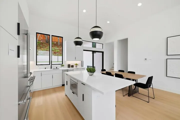 Offers review by 3/10 @ 10am. This truly must-see property is the envy of the neighborhood and ready for you to move in. Beautifully crafted and spacious, this four-bedroom, three-bathroom home was substantially renovated. Plus, the location is ideal, right next to essentially everything you could need. The main level features soaring 14-foot ceilings and a bright, airy open floor plan. It includes a convenient lower-level en suite with a private side-door entrance. Upstairs, you will find the primary en suite, two additional bedrooms, and a dedicated laundry room. The kitchen opens directly to a patio area perfect for alfresco dining and a level play area featuring low-maintenance artificial turf. This home includes modern upgrade on your checklist: Custom cabinets and high-end appliances,Radiant floor heating in bathrooms and laundry room, Engineered 5/8 clear oak flooring, Heat pump HVAC system and an 80-gallon heat-pump water heater, Upgraded electrical panel, Double-pane windows and a 40-year rated roof, Five-coat stucco exterior system, Gutters connected to underground drainage, (2) 50 amp plugs in garage. The location is ideal, offering easy access to shopping, restaurants, Laurelwood Park, major freeways, and Caltrain. Home is assigned to Hillsdale HS and is rated 9/10.