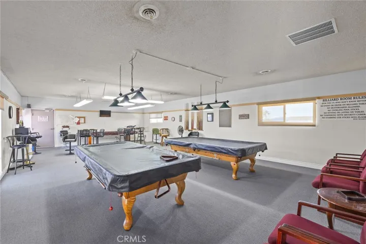 Highland Palms Community amenities include a 9-hole USGA-rated executive golf course, RV parking, and a clubhouse with kitchen, heated pool, spa, sauna, fitness room, billiard room, card room, library, gaming and banquet rooms, and a multipurpose room for community events. Amenities are included in the monthly HOA fee.
