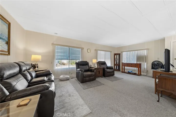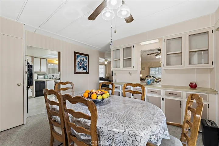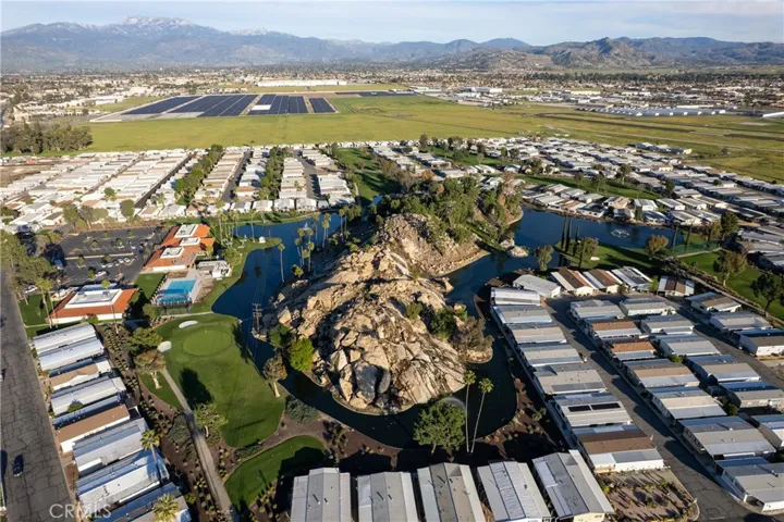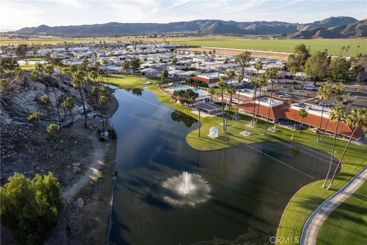 Well-maintained 2 bedroom 2 bath located in scenic The Lakes at Hemet West senior 55+ mobile home park. Formal living/dining combo with low-pile Berber carpet, ceiling fan, and built-in buffet hutch. Galley kitchen has gas cooktop, dishwasher, refrigerator, breakfast bar, and newer gas oven/boiler. Cozy family room with access to raised covered front porch. Master has ceiling fan, two closets, and dual-sink vanity with oversized stall shower. Inside laundry shelving, washer and dryer included. Guest bedroom as en suite full bath also accessible from main living area. Both HVAC and energy-saving evaporative cooling unit. Security screen doors. Roof resealed approximately 3 years ago and home was recently re-leveled. Extra tall carport accommodates higher-rise vehicles. Handicap accessible ramp. Easy-care rockscaping. Bearing fruit trees including navel oranges, loquat, and “cherry” guava. Park amenities include 9-hole par 3 Golf Course, heated pool and spa, indoor shuttleboard court, catch-and-release fishing, pickleball court, bocce ball, horseshoes, picnic area, playground, dog park, and community garden. Clubhouse and banquet room with kitchen facilities, billiard tables, fitness center, ceramics room, library/reading room, and community laundry. Hosted events. Monitored gate access. One of the nicest parks in the valley.