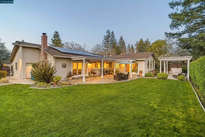 Ready for its next chapter, 614 Thornhill is a thoughtfully updated home in the desirable Diablo West neighborhood. This 3-bedroom + office and 2 bath home offers flexibility, comfort, and a layout that truly works for everyday living. This home is also equipped with solar panels, 3 car garage with extra storage space, and a side yard with a garden bench and tool shed. Hardwood floors run through the main living areas, anchored by a tile entryway that creates a welcoming first impression. Both bathrooms have been updated with quartz countertops, custom tile, and finished laminate flooring for a clean, modern look. The remodeled kitchen offers clean finishes, ample cabinetry, a breakfast bar, and a built-in coffee bar. It opens directly to the family room with access and views to the spacious and landscaped backyard. This layout keeps the backyard in view and makes everyday living feel open and connected. Just off the entry is a formal living room and french doors that lead to an office, which can also be converted to a formal dining room. The primary bedroom with an updated en-suite bathroom has sliding door access to the backyard and spa. The backyard is expansive, private, and peaceful. Close proximity to downtown Danville and schools.