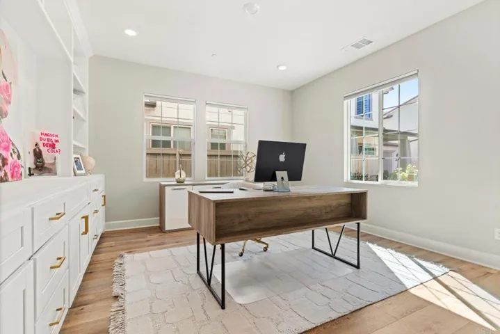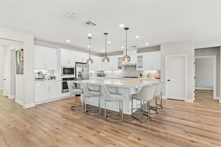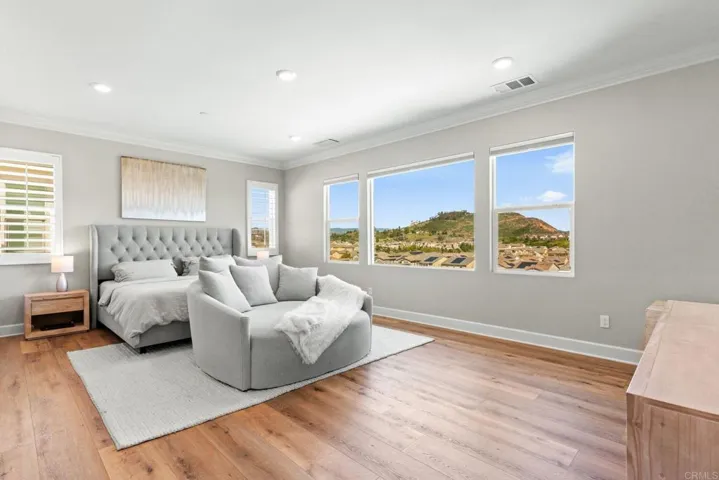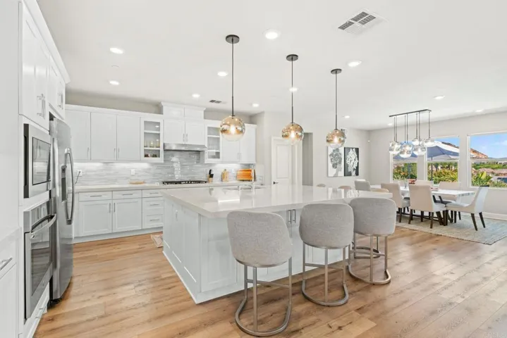 *Open Houses on 4/18 & 4/19 from Noon to 3:00pm* Seller will entertain offer price $1,580,000 – $1,625,000. SPECTACULAR PANORAMIC VIEWS define this exceptional residence, gracefully positioned on a cul-de-sac in the highly sought-after Harmony Grove Village. Designed to capture sweeping vistas and effortless indoor–outdoor living, this remarkable home showcases a fully landscaped backyard with a sparkling saltwater pool, a spa, and glass fencing to take in the impressive views – an entertainer’s dream. Offering 5 bedrooms and 4.5 bathrooms, the thoughtfully designed 3,465 square-foot floor plan includes a downstairs bedroom with en-suite perfect for guests and a home office with custom built-in cabinetry, ideal for today’s flexible lifestyle. The kitchen is beautifully appointed with an oversized center island, walk-in pantry, crisp white shaker cabinetry, and designer backsplash upgrades that extend throughout the kitchen and baths. Upstairs, an expansive bonus room provides versatile living space, while the luxurious primary suite features sweeping views from the large windows, an en-suite bath, and walk-in closet. Secondary bedrooms include en-suite baths, offering comfort and privacy for family and guests alike. Luxury vinyl plank flooring flows seamlessly throughout the home, complemented by elegantly tiled bathrooms. Dual-zone air conditioning ensures year-round comfort. Energy-efficient enhancements include fully paid solar, a Tesla EV charger, and a storage battery system. An upgraded security system with Ring doorbell camera adds peace of mind. Harmony Grove Village residents enjoy exceptional community amenities including a resort-style pool, BBQ areas, multiple parks, scenic walking and biking trails, playgrounds, and a dedicated dog park—embracing the very best of San Diego County living!