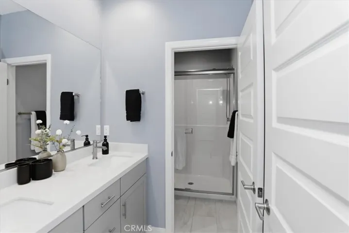 The private primary suite is a true retreat, featuring a spa-like bathroom with luxurious finishes, dual vanities, frameless shower, soaking tub and a spacious walk-in closet complete with custom built-ins for optimal organization.