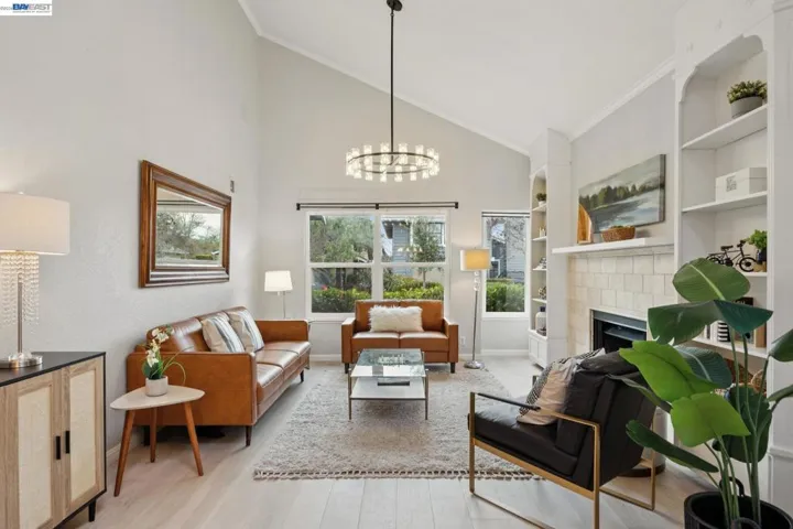 Elegant and inviting Bay Isle Pt. residence offering 3 bedrooms and 2.5 baths in a coveted location next to the greenbelt and lagoon. The formal living room features vaulted ceilings, fireplace, built-in bookcase & skylight. A dining room with French doors opens to the private side yard. The updated kitchen features beautiful stone countertops, custom built-in cabinets & stainless-steel appliance. The adjacent family room with custom travertine wall fireplace opens to both a tranquil, landscaped rear yard. The upper-level primary suite offers vaulted ceilings, a walk-in closet, and a beautifully updated bath with marble finish, dual vanities and a spacious walk-in shower. Secondary bedrooms are good-sized, updated baths, and a two-car garage. Landscaped backyard with curved concrete retaining/seat wall & mature greenery. Close to ferry, trails, lagoon, parks and top schools.