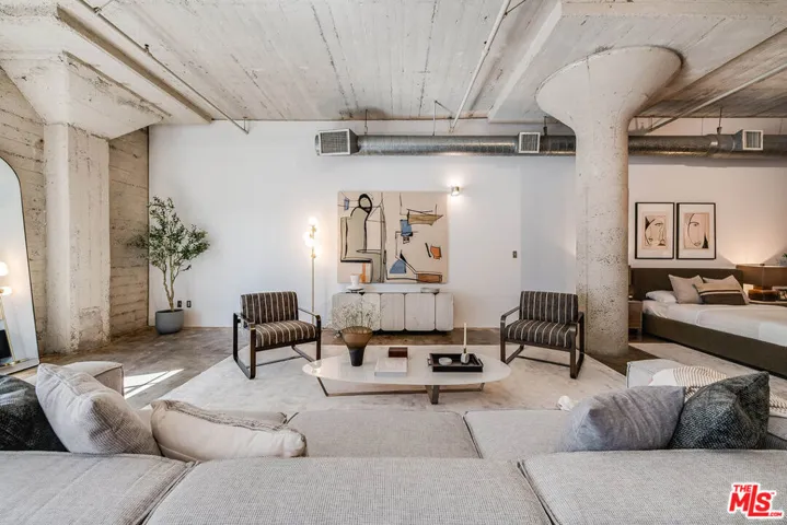Toy Factory Lofts, a highly coveted Live/work loft community in the vibrant Arts District of DTLA. This remarkable Penthouse loft, a rare find, boasts an expansive open floor plan with soaring 12-foot ceilings. Original 1924 concrete floors and columns combine historic features with modern living. The loft is illuminated by oversized industrial-style windows, recently upgraded with new glass and motorized shades, facing south to invite abundant of natural light throughout the space. Recent upgrades include kitchen appliances: a Bosch gas stove, Samsung refrigerator and dishwasher, and a large LG front loading stackable washer-dryer. Resort like building amenities enhance the living experience, offering a secure lobby with a 24-hour doorman, a rooftop pool surrounded by a sun deck and a cozy fire pit that provides breathtaking views of the DTLA skyline, 6th Street Bridge, and snow capped mountains. Enjoy a communal deck with lush green spaces, barbecue areas, and a two-story gym. Residents benefit from an assigned, indoor, secured parking space in the attached private garage. Toy Factory Lofts is located just steps away from Hank’s Organic Market, restaurants like Camila, Bestia, Bavel, The Soho House, DTLA Row Factory, The Bike Shed Moto Co, and galleries including Hauser & Wirth, ICA LA and many more. It is also located 2 blocks from Warner Music and Spotify offices with easy access to the 5, 10 & 101 FWYS. This penthouse loft offers the ultimate freedom to live, create, and work from home in a true industrial-chic settinga rare opportunity in one of DTLA’s most iconic buildings.