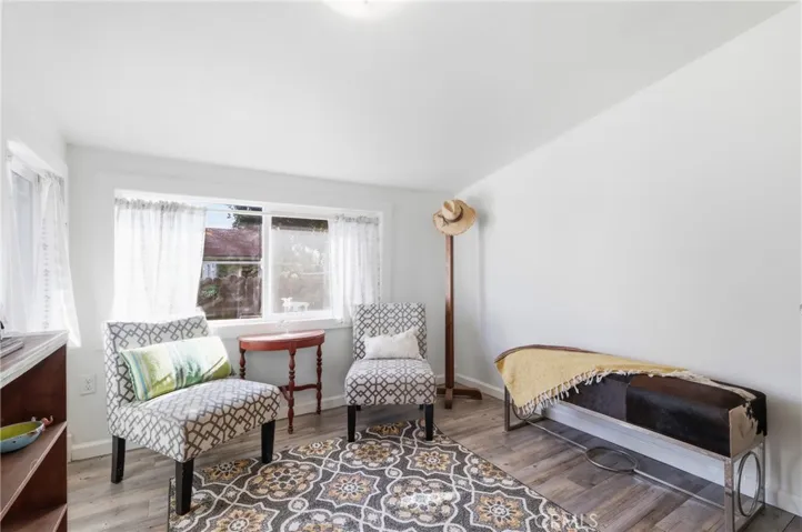 The front home features 2 bedrooms and 1 bath, offering a light-filled, spacious family room with newer windows, recessed lighting, and a ceiling fan. The living space flows seamlessly into a charming dining area with built-in cabinetry and custom ceiling details. The upgraded kitchen includes newer appliances (refrigerators included in both units), a farmhouse sink with matte black fixtures, and butcher block countertops. Enjoy outdoor living with a welcoming front patio and a private backyard—perfect for entertaining or play.