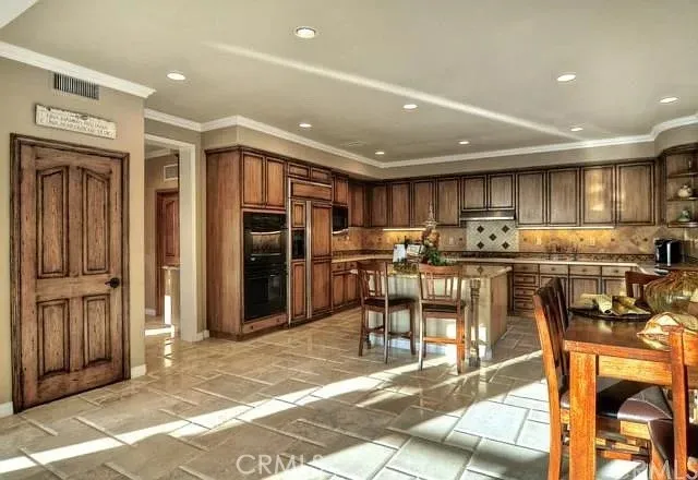 Live above it all in the highly sought-after Eastlake Pointe community of Yorba Linda. This stunning approx. 4,600 sq. ft. estate offers sweeping panoramic city light views — and on clear days, even Catalina. Just moments from East Lake Village, enjoy the rare combination of hillside privacy and close proximity to the lake, scenic walking paths, and resort-style amenities. The grand entry makes an immediate statement with soaring ceilings, oversized picture windows, and designer finishes throughout. Versailles-pattern travertine floors, custom antiqued cabinetry, Lutron lighting, and elegant draperies elevate every space. The flexible floor plan offers 4 bedrooms plus a spacious bonus room (optional 5th bedroom), including a large downstairs suite with its own private bath — ideal for guests or multi-gen living. The chef’s kitchen features honed Crema Marfil countertops, custom backsplash, and seamless flow into expansive living areas designed for entertaining. Step outside to a true entertainer’s backyard complete with a covered loggia, outdoor fireplace, built-in BBQ, and Pebble Tec saltwater pool and spa — all set against breathtaking views. Residents enjoy access to the East Lake Village Association amenities: clubhouse, multiple pools, gym, private lake, parks, tennis courts, basketball courts, and miles of walking trails — all with a low monthly HOA. Luxury, location, and lifestyle — all in one exceptional lease opportunity. Lease doe not include any of the furnitures in the photos.