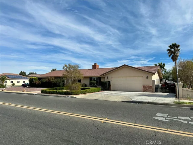 Welcome home to the sought after community of Spring Valley Lake located in the city of Victorville. Experience the perfect blend of comfort and community in this charming 1,744 sq. ft. residence (approx). Situated on an oversized 7,200 sq. ft. lot (approx), this 3-bedroom, 2-bathroom home welcomes you with beautifully landscaped front and back yards. The heart of the home features a spacious kitchen boasting granite countertops and abundant cabinet storage, flowing effortlessly into a dining room with elegant French doors. The cozy family room, centered around a classic fireplace, is perfect for chilly evenings. Retreat to the primary suite, which offers a touch of luxury with a granite-topped vanity and a custom tile-decorated shower. Outside, enjoy year-round entertaining under the large covered patio. With proximity to the lake, schools, shopping, dining and freeway access, this home offers a lifestyle of convenience and recreation.