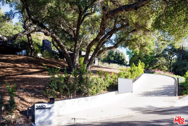 A gated architectural residence set on approximately 1.3 acres of land in a private setting surrounded by mature oak trees and native California landscaping. Located near the Westside, Mulholland, schools, and restaurants, the property offers both seclusion and accessibility. The home features large-format slate flooring, custom built-ins, and natural materials throughout. The main living area includes a fireplace, high ceilings, and integrated shelving, flowing into a kitchen appointed with Walker Zanger limestone counters and Gaggenau and Wolf appliances. The primary suite includes a fireplace, walk-in closet, private patio, and en-suite bath with Boffi fixtures and a solid travertine soaking tub. An upstairs secondary suite offers vaulted ceilings and an en-suite bath. The lower level includes a media room, guest bedroom and en-suite bathroom with steam shower. Outdoor spaces include multiple decks, a saline plunge pool, fire pit, and landscaped grounds. The expansive lot size may present an opportunity for expansion, reconfiguration, or further development, subject to buyer investigation, zoning regulations, and city approvals. Buyer is advised to independently verify all information and review seller disclosures.