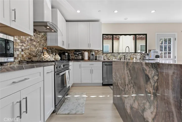 Located in Glenoaks Canyon, this stunning 1929 Tudor home has been completely remodeled and updated and is just perfect for those who appreciate the perfect blend of classic style and modern convenience. The beautiful entry door leads into a spacious open floor plan filled with an abundance of natural light and a lovely marble fireplace. The gorgeous eat-in kitchen includes an exquisite granite waterfall island, amazing tile backsplash, and brand new appliances including a wine refrigerator. The full bathrooms are truly aa oasis, featuring floating vanities, luxurious glass enclosed showers and the master suite bathroom includes a wonderfully deep soaking tub. The charming backyard includes a large covered patio with recessed lighting making it perfect for family gatherings. As a fabulous bonus, the garage has been converted to a permitted, 734sqft, 1bd, 1ba ADU with all new appliances, including a washer and dryer. There is also a finished attic with an additions 490sqft that can be used as a bonus area. Just minutes from top-rated Glendale schools, shopping, golf courses, and transportation. All additions and construction has been done with permits except the attice. Seller will provide buyer with all of the architectural plans and permits.