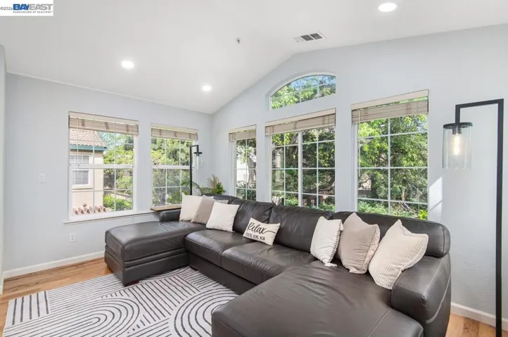 Welcome to this beautifully updated townhome in the highly sought-after Siena community. Situated on a private corner lot, this light-filled 2-bedroom, 2-bath home offers 1,064 sq ft of thoughtfully designed living space with an open-concept layout ideal for modern living. The updated kitchen features premium quartzite countertops, subway tile backsplash, breakfast bar, and stainless steel appliances, flowing seamlessly into the inviting living area with a cozy gas fireplace. Laminate flooring runs throughout, enhancing the home’s contemporary feel. Both bathrooms have been tastefully updated, and the in-unit washer and dryer add everyday convenience. Enjoy your private balcony or relax at the community’s below-ground pool and spa. An attached one-car garage completes the home. Conveniently located near Hwy 580/680, BART, Kaiser, Oracle, Iron Horse Trail, dining, shopping, and vibrant downtown Pleasanton, this home offers comfort, style, and an unbeatable location.
