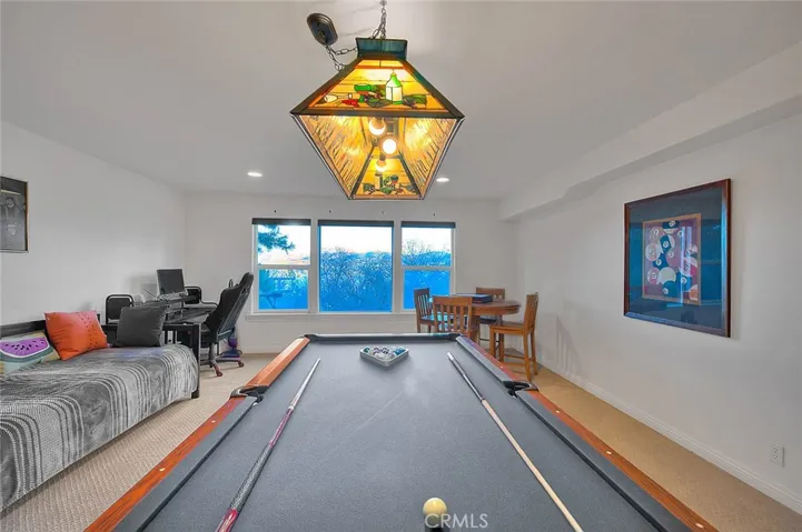A spacious game room on the lower level provides additional gathering space, ideal for recreation, media, or hosting guests.