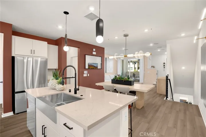 Rare opportunity to own a fully upgraded, professionally designed model home offered completely furnished with upscale furniture and custom décor. Located in an intimate enclave of just 44 homes in Anaheim bordering Buena Park, this stunning three-story townhome blends modern design, smart functionality, and low-maintenance living. Thoughtfully designed for today’s lifestyle, the versatile floor plan features 3 bedrooms and 3.5 bathrooms, including a private downstairs bedroom with en-suite bath—ideal for guests, multigenerational living, or a home office. The second level showcases an expansive open-concept layout with seamless flow between the kitchen, dining, and living areas, creating the perfect space for entertaining or relaxing. The designer kitchen offers abundant storage and opens directly to the main living space for convenient everyday living. Upstairs, two spacious bedrooms each feature their own bathrooms, providing comfort and privacy. Additional highlights include ample storage throughout, energy-efficient construction, and a 2-car attached garage. Enjoy a true lock-and-leave lifestyle in a community designed for convenience and connection. Residents have access to an inviting open green space, BBQ area, fire pit, and ping pong table—perfect for gathering with friends or unwinding at the end of the day. Situated adjacent to an exciting new development revitalizing the area with state-of-the-art entertainment, shops, and retail, the location offers exceptional accessibility. Close proximity to the 91 and 5 freeways allows for easy commuting throughout Orange County and Los Angeles County. Additional benefits include a low tax rate of approximately 1.07% and HOA dues projected between $275–$339 at build-out. Special builder incentives are available for a limited time. A rare model home opportunity combining designer finishes, modern efficiency, and unbeatable convenience.