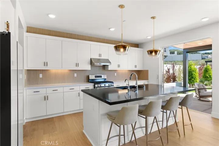 Inside, the home is light, bright, and thoughtfully finished throughout with a clean, modern aesthetic. The open-concept layout is complemented by wide-plank flooring, abundant natural light, and designer lighting. The kitchen is a standout with generous cabinetry, a large center island with seating, and stylish pendant fixtures—opening seamlessly to the dining and living areas for easy everyday living and entertaining. Additional highlights include a modern feature wall in the living space, well-proportioned bedrooms, and flexible-use space ideal for an office, lounge, or media room.
