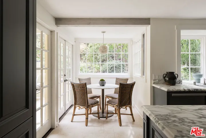 This exceptional Hollywood Hills villa, blending European charm with a contemporary allure, offers a rare, large lot allowing for a secure gated entry and motor court, lush succulent gardens, privacy hedges, an expansive loggia, pool, spa, bbq area, putting green, and fire-pit, all to be enjoyed while absorbing exciting views with front row seats to Universal’s July 4th firework display. From the gated driveway, enter the courtyard to find welcoming French doors revealing the formal living area with stone flooring, high beamed ceilings, furniture quality built-ins and a gas burning fireplace ready to soar. A lovely bar area provides a seamless transition to the dining area, where another fireplace creates an intimate ambiance for memorable meals. The center-island kitchen offers gorgeous marble finishes, top-of-the-line stainless appliances and a cozy breakfast nook that bathes in natural light. On the main floor there is a powder room for the service of guests, two en-suite bedrooms, and a laundry room. Upstairs find two additional en-suite bedrooms, with the primary suite offering two closets, one being a large walk-in with cedar lining. The finished garage is equipped with a 240V wall outlet for charging electric cars. The location of this villa is just as enticing as the property itself, easy to reach and conveniently close to major studios, Studio City’s renowned dining, shopping and bar scene, Hollywood’s vibrant entertainment, and easy freeway and metro access to explore all that greater Los Angeles has to offer.