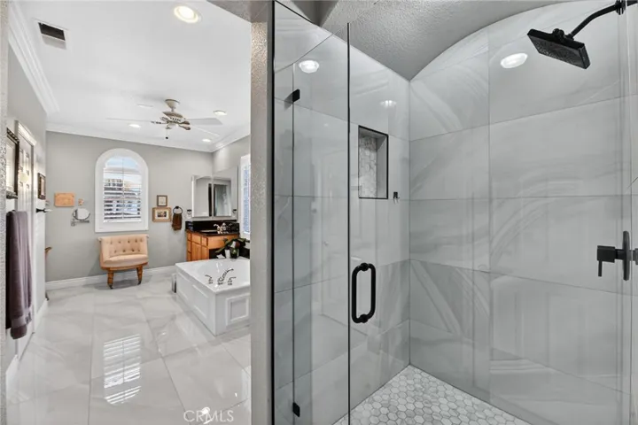 Welcome to this beautifully appointed 4-bedroom, 3-bathroom home with an option for a 5th bedroom, offering 2,849 sq ft of spacious living in the highly sought-after Redhawk community of Temecula. Ideally situated near the Redhawk Golf Course and within the boundaries of award-winning Great Oak High School, this home blends comfort, functionality, and timeless style. From the moment you enter, you’re greeted by soaring ceilings, expansive windows, plantation shutters, and a seamless open-concept layout designed for both everyday living and entertaining. The formal living and dining areas connect effortlessly and are filled with natural light, enhanced by inviting golf course views. The chef’s kitchen is the heart of the home, featuring slab granite countertops, abundant cabinetry, a walk-in pantry, stainless steel appliances, recessed lighting, and a 6-burner Viking cooktop, all opening to the spacious family room with a cozy gas fireplace and custom built-in entertainment center. The home has been thoughtfully updated with roughly $75,000 in recent upgrades, including refreshed kitchen cabinetry, a remodeled upstairs bathroom, fresh interior paint, updated landscaping, elegant chandelier lighting, electronic window shades, new retractable door screens, and added security lighting and cameras. The main level includes a full bedroom and bath, ideal for guests or a home office, along with a laundry room offering a sink and extra cabinetry. The 3-car garage provides ample storage plus a dedicated workshop area with built-in cabinets. Upstairs, a versatile loft offers space for a media room or optional bedroom conversion. The expansive primary suite captures peaceful golf course views and includes dual closets, granite vanities, and a relaxing soaking tub. The secondary bedrooms are generously sized and filled with natural light. Outside, enjoy a spacious patio perfect for relaxing or entertaining, surrounded by drought-tolerant landscaping with turf in the front and back yards for low-maintenance living. Conveniently located near top-rated schools, shopping, dining, Pechanga Resort & Casino, and Temecula Wine Country, this home offers an exceptional lifestyle in one of Temecula’s most desirable communities.