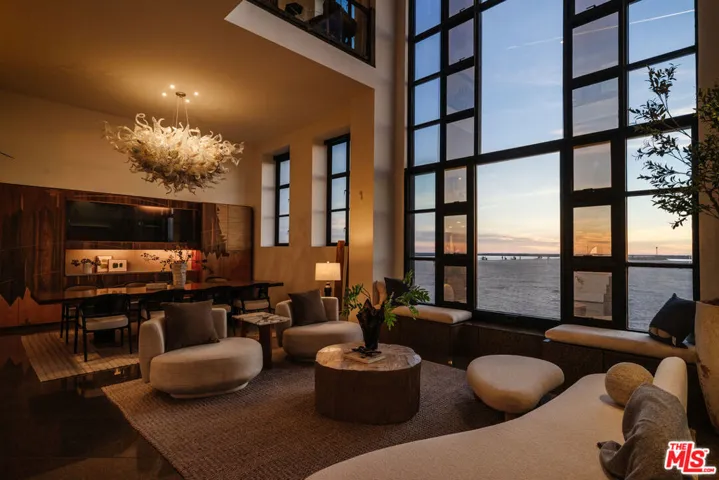This iconic oceanfront residence in Marina del Rey is the epitome of premier coastal California living. Tucked within the ultra-private Marina Peninsula enclave, this extraordinary home delivers unrivaled serenity on a secluded stretch of the beach while staying close to the vibrant pulse of Venice Beach. Created by the renowned sculptor Robert Graham in close collaboration with dozens of iconic 1980s artists, this home integrates their extraordinary site-specific works throughout. The result is an irreplaceable living artwork, famously featured on the cover of Architectural Digest – a breathtaking fusion of ocean energy, marina views, and modern luxury. Enter through stunning stained-glass doors into open living and dining spaces bathed in natural light and filled with gentle sea breezes. A soaring two-story window with custom bronze accents frames panoramic beach views, creating heavenly tranquility within earshot of the ocean waves. The entertaining kitchen flows seamlessly into the dining room, anchored by a striking hand-blown Dale Chihuly chandelier, while a full secondary kitchen is tucked away discreetly in the back for effortless service and preparation. Ascend the architecturally pleasing staircase to a private office with tranquil ocean views and exquisite built-in cabinetry. Beyond lies the primary suite, a spacious and serene retreat with expansive floor-to-ceiling windows that invite abundant natural light and sweeping ocean vistas from sunrise to sunset. It includes refined etched Waterford crystal accents, automated shades, generous walk-in closets, a luxurious sauna-equipped bath, elevator access, and direct entry to the rooftop. The home is thoughtfully divided into two wings: the east wing houses the guest bedrooms, offering privacy and comfort, while the captivating secondary living room features a waterfall skylight, overhead mural, and angled marble floors. The private rooftop offers sweeping panoramas from Palos Verdes in the south to Malibu to the north across the Marina channel and Pacific to the west, all further enhanced by custom mosaics. Additional highlights and luxury amenities include a lower level with an informal theater or gym, powder room, and 4-car garage; a 4-stop elevator; mosaic lap pool; whole-house filtration; central vacuum system; and generator. Perfectly balancing the best of California beach charm with effortless access to world-class shopping, dining, entertainment, and travel, this home weaves an irresistible combination of art, nature, and sophisticated design into vibrant daily life. Your oceanfront sanctuary awaits.