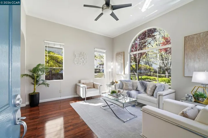 Welcome to a beautifully updated 4-bedroom, 3 full-bath North-East facing Corner home in the heart of Gale Ranch community of San Ramon. With only one shared wall at the garage, this residence offers exceptional privacy and the feel of a single-family home. The thoughtfully designed floor plan features A RARE ONE BED & ONE FULL BATH DOWNSTAIRS— ideal for guests, multi-generational living, or a dedicated home office. Fresh interior paint, wide-plank laminate flooring, soaring ceilings, crown molding, and abundant natural light create a bright and inviting ambiance throughout. The renovated kitchen highlights quartz countertops, a center island, stainless steel appliances, tile backsplash, and RO water filtration — perfectly suited for both everyday living and entertaining. Enjoy serene greenbelt views, a renovated patio, and immediate access to the community pool and expansive grassy areas. Ideally located just steps from The Plaza at Gale Ranch, Safeway, parks, dining, and convenient commuter routes. Zoned for award-winning walkable San Ramon schools — elementary, middle, and high school — and nestled in one of the East Bay’s most desirable neighborhoods, this move-in ready home is an opportunity you don’t want to miss.