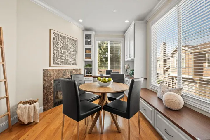 Prime Location | Boutique Community | Luxury Finishes Welcome to this beautifully appointed DaVinci Homes townhome in an intimate community of just 8 residences! This home features an open-concept floor plan with 9 foot ceilings, gleaming hardwood floors, and large dual-pane windows throughout. Enter to find the living area with built-in shelving and an abundance of natural light. The kitchen area features a fireplace, a built-in desk, GE Profile stainless steel appliances, granite slab countertops, gas range, and a built-in microwave. Spacious bedrooms include cathedral and coffered ceilings, crown molding, and custom closet organizers. The primary suite features dual sinks, a jacuzzi soaking tub, separate stall shower, and travertine flooring. Additional highlights include indoor laundry, an attached 2-car garage, and low HOA dues of just $270/month. Ideally located minutes from Apple, Netflix, Santana Row, Westfield Valley Fair, Central Park, and easy access to Hwy 280 and major commute routes. Don’t miss this rare opportunity in a highly desirable Silicon Valley location!