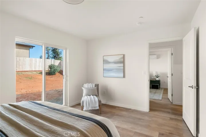 Situated at the end of a quiet street, this home checks all of the boxes on your wish list! As you enter the home, you are greeted by a formal entryway leading into the open floor plan with a vaulted ceiling in the living room and kitchen. Featuring warm luxury vinyl flooring, large windows, recessed lighting and clean sightlines the space is open and inviting. The kitchen has granite counters, white cabinetry, a walk-in pantry, and an island for morning coffee or late night cereal. Right off the kitchen is the indoor laundry and a den/flex room with a ceiling fan that can be used as a formal dining room, home office, or play room. The guest bedroom and bathroom are down the hall with the primary suite across the hall. In the primary you will find a sliding glass door that leads to the yard and an ensuite bathroom with a dual sink vanity, walk-in closet, and floor to ceiling tile walk-in shower. There is plenty of storage in the home with an entry closet, hall closet, and linen closet in the primary bathroom. Outside you will find concrete RV parking and an expansive fully fenced backyard. There is also owned solar and ductless mini splits for energy efficiency. This home is the perfect place for you to call home and start making wonderful memories!