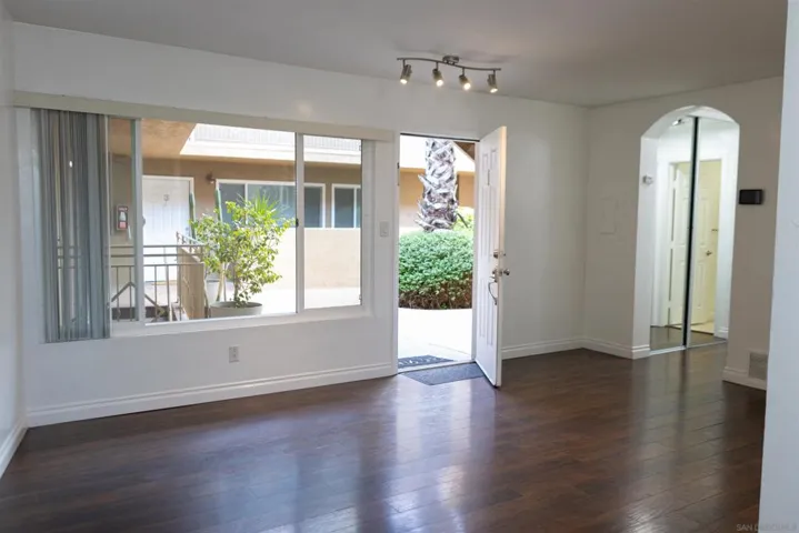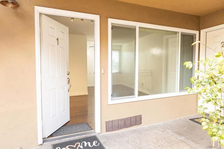 Beautiful ground-floor condo in a charming, small gated community near San Diego State University! FHA and VA approved, this bright and airy end unit is ideally situated at the end of a quiet cul-de-sac, offering both privacy and convenience. The open layout is filled with natural light from numerous windows, creating a warm and welcoming atmosphere. The updated kitchen features stainless steel appliances and modern finishes, perfect for everyday living and entertaining. Enjoy the convenience of an oversized stackable washer and dryer in-unit. The comfortable bedroom includes mirrored closet doors, and ceiling fans enhance airflow throughout the home. This well-maintained complex offers a sparkling community pool. Just minutes from shopping, dining, and freeway access, this move-in-ready condo combines comfort, style, and an unbeatable location!