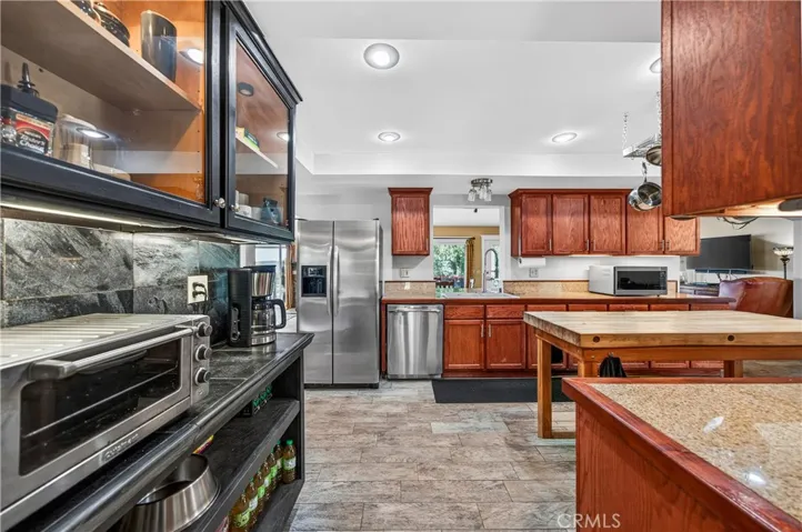 An extraordinary opportunity awaits at 33620 Oak Dr, Hemet, CA 92544 an exceptional 47.85-acre retreat privately situated at the end of a dedicated easement and embraced by a stunning 360-acre nature preserve and national forest. This remarkable property features three beautifully designed residences, creating the ultimate private sanctuary for multi-generational living, rental income, or a peaceful escape. The main residence spans approximately 3,400 square feet and offers four spacious bedrooms, three full bathrooms, two dining areas, and a thoughtfully designed kitchen that opens seamlessly into a breathtaking great room with a built-in bar and panoramic views through three expansive sliding glass doors perfect for unforgettable gatherings. Solid wood plank flooring enhances the inviting family room, complete with a cozy wood-burning stove, while the downstairs features tile flooring and the home boasts a total of two wood-burning stoves and one fireplace. Upstairs, four bedrooms one ideal for a home office provide comfort and flexibility. The second residence, an approximately 1,450-square-foot manufactured home, includes two bedrooms, two bathrooms, a generous living room, a family room with a wood-burning stove, a spacious kitchen with an island, and an indoor laundry area. The third residence, affectionately known as “The Cottage,” offers approximately 850 square feet of charming living space with one bedroom, one bathroom, a brand-new kitchen, and a wood-burning stove that enhances its cozy cabin ambiance. The land itself is a nature lover’s dream, featuring seasonal creeks and ponds, abundant wildlife, pasture areas, and multiple hiking trails, all at an elevation of approximately 3,100 feet with sweeping views of rolling hills and mountain ranges stretching from Big Bear to Idyllwild. With ample space for livestock, recreation, and endless possibilities, plus the benefit of private well systems, this one-of-a-kind property offers unmatched privacy, versatility, and breathtaking natural beauty.