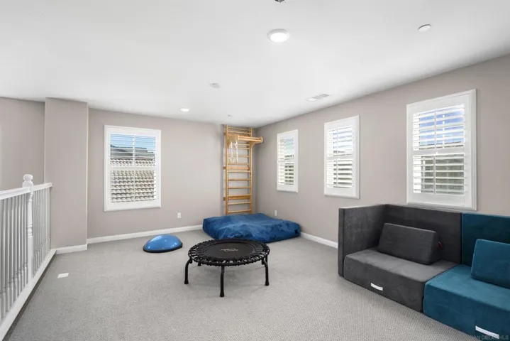 This beautifully appointed 4-bedroom, 3.5-bath, 2-story home offers the perfect blend of modern comfort and outdoor luxury. Tucked away on a quiet cul-de-sac, it provides a serene escape with premier access to nature. The main level boasts a great room, a 2nd primary bedroom, and a living/study area, while the upper level serves as a private retreat for the family. The yard is designed for gatherings, offering ample space for outdoor dining and poolside play. Easy care yard. Play structure can convey. Enjoy the ultimate Southern California lifestyle with the Walker Preserve Trail within walking distance. This 1.3-mile flat, well-maintained path is perfect for walking, jogging, or cycling along the San Diego River. Summer concerts in the park and so much more that Santee has to offer. LVP flooring. Smart irrigation system. Patio features ceiling fans. Portable pool safety fence. Shed on side yard conveys. Extra room measurements – loft area.