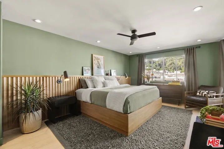 Sleek, modern condo with Hollywood Hills views in a full-service doorman building, moments away from Runyon Canyon. The unit features an open floorplan layout with wide plank hardwood floors, updated kitchen and 1.5 bathrooms, in-unit laundry and a private balcony. Franklin Towers residents enjoy amenities that include a pool, hot tub, sauna, gym and valet guest parking.The recent renovation was completed in 2024 with a thoughtfully designed kitchen with grain-matched cabinetry, porcelain slab waterfall counters, Roman clay ventilation hood and integrated Fisher & Paykel refrigerator. A built-in, low-profile workstation offers a convenient work-from-home solution, blending into the residence’s clean lines. The bedroom is appointed with two generous closets and a remodeled full bathroom with separate bathtub and glass-enclosed shower. Additional storage includes a hall closet and built-in cabinetry. An HVAC system installed in 2025 and a Nest thermostat ensure comfort year-round. Dedicated parking space with electric vehicle charging.