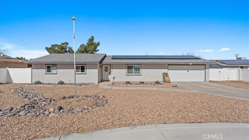 Welcome to 13020 Ojai Rd in the heart of Apple Valley! This beautifully upgraded home offers comfort, efficiency, and peace of mind with major improvements already completed for its next owner. In 2022, the home received a brand-new HVAC system along with updated ducting, providing energy-efficient heating and cooling year-round. That same year, solar panels were installed to help reduce monthly utility costs and increase long-term savings. A new water heater was also added in 2022, along with a whole-house carbon filtration backwash system, delivering clean, filtered water throughout the home. The kitchen and laundry areas feature appliances that are all 2022 or newer, ensuring modern convenience and reliability. Rear-facing windows have been replaced with dual-pane glass, improving insulation, reducing outside noise, and enhancing overall energy efficiency. One of the most significant upgrades is the new roof, completed with new decking and shingles and backed by a 50-year transferable warranty—an incredible value that provides lasting protection and added buyer confidence. Outdoor living has also been enhanced with a newly constructed patio in 2023, creating the perfect space for relaxing evenings, entertaining guests, or enjoying the peaceful desert surroundings. Located in the desirable 92308 area of Apple Valley, this home offers the charm of a quiet neighborhood while remaining close to shopping, dining, schools, and medical facilities. With its extensive list of recent upgrades, energy-efficient features, and move-in-ready condition, 13020 Ojai Rd is an exceptional opportunity for buyers seeking both quality and value. Don’t miss your chance to own this thoughtfully updated property where major systems have already been modernized—allowing you to focus on enjoying your new home from day one.