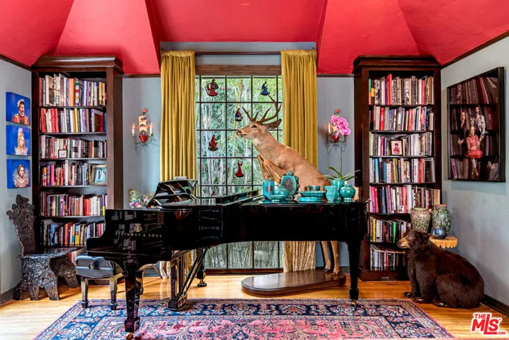 Standing guard over a private enclave of Mt Olympus, this 1926 Spanish storybook should best be described as a romantic love affair with life. Born in an era when silents were turning into talkies, this is the home that will write your next chapter and allow your inspiration to flow. Rich with rockstar history and filled with classical elements like wood-beamed cathedral ceilings, stained glass windows, a mantled fireplace, a fabulous octagon shaped library, lush greenery yards and outdoor dining areas with balconies on every level of the house. The kitchen, made to inspire your culinary efforts, connects to a formal dining room with an ambiance to entertain, fulfilling every expectation of a perfect night at home with friends. Cross the lovers bridge and you know, you’ve found your place to come home to.